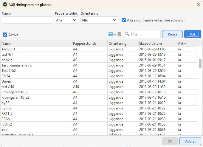 Bocka för Alla sidor om ritningsramen ska infogas på samtliga sidor.