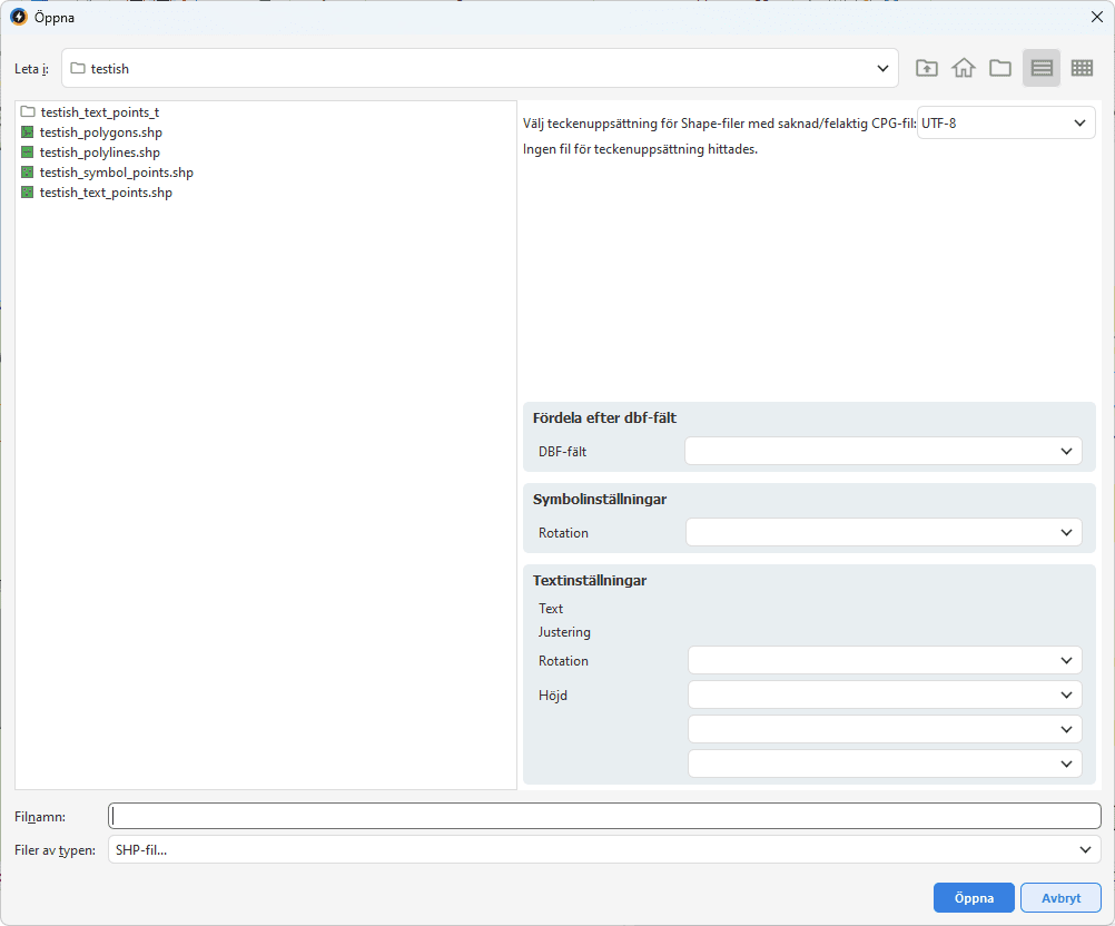3.Välj Shape-fil och tillhörande mappningsfil.