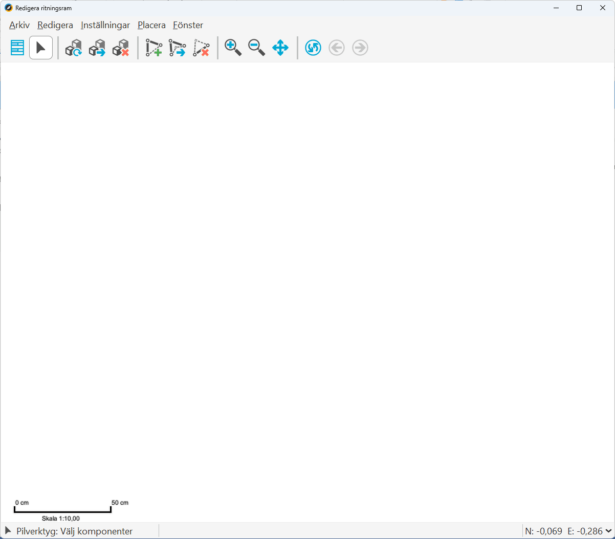 Verktyget Redigera ritningsramar gör det möjligt att designa egna ritningsramar som sedan kan placeras i verktyget för fri plottning.