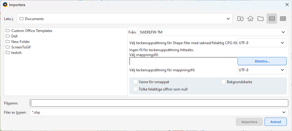 3.Välj Shape-fil och tillhörande mappningsfil.