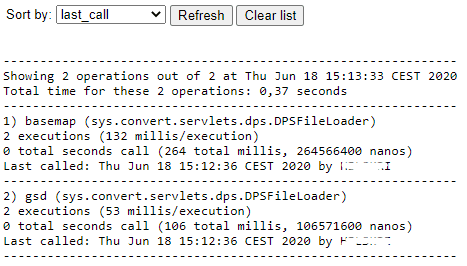 Sammanställning av exekveringstider för SQL-frågor och servlets. Kan sorteras på:
