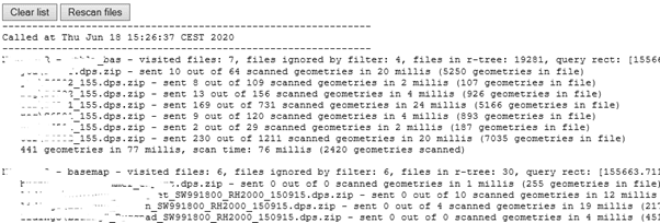 Visar vilka dps-filer som laddats och hur många geometrier som laddats inom en viss vy.