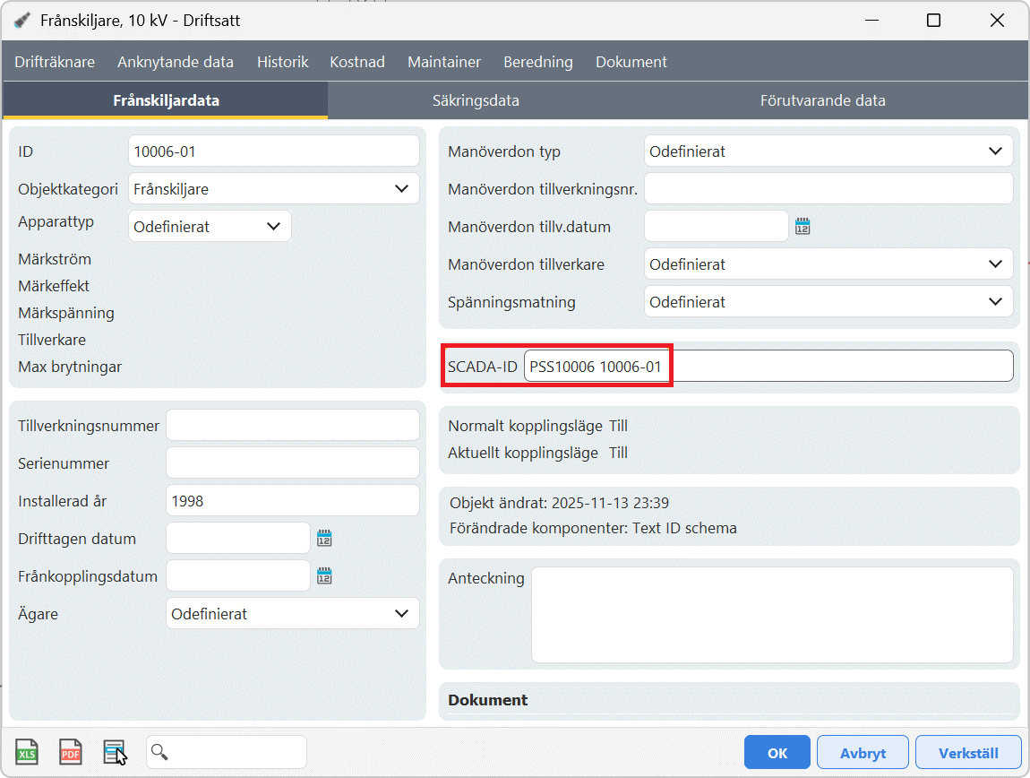 •SCADA-ID är raderat.
