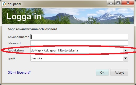 Första gången du skall starta dpMap, börjar du med att beställa ett engångslösenord. Det gör du genom att klicka här. (Du kan också klicka på "Glömt lösenord" i dpMaps inloggningsruta)